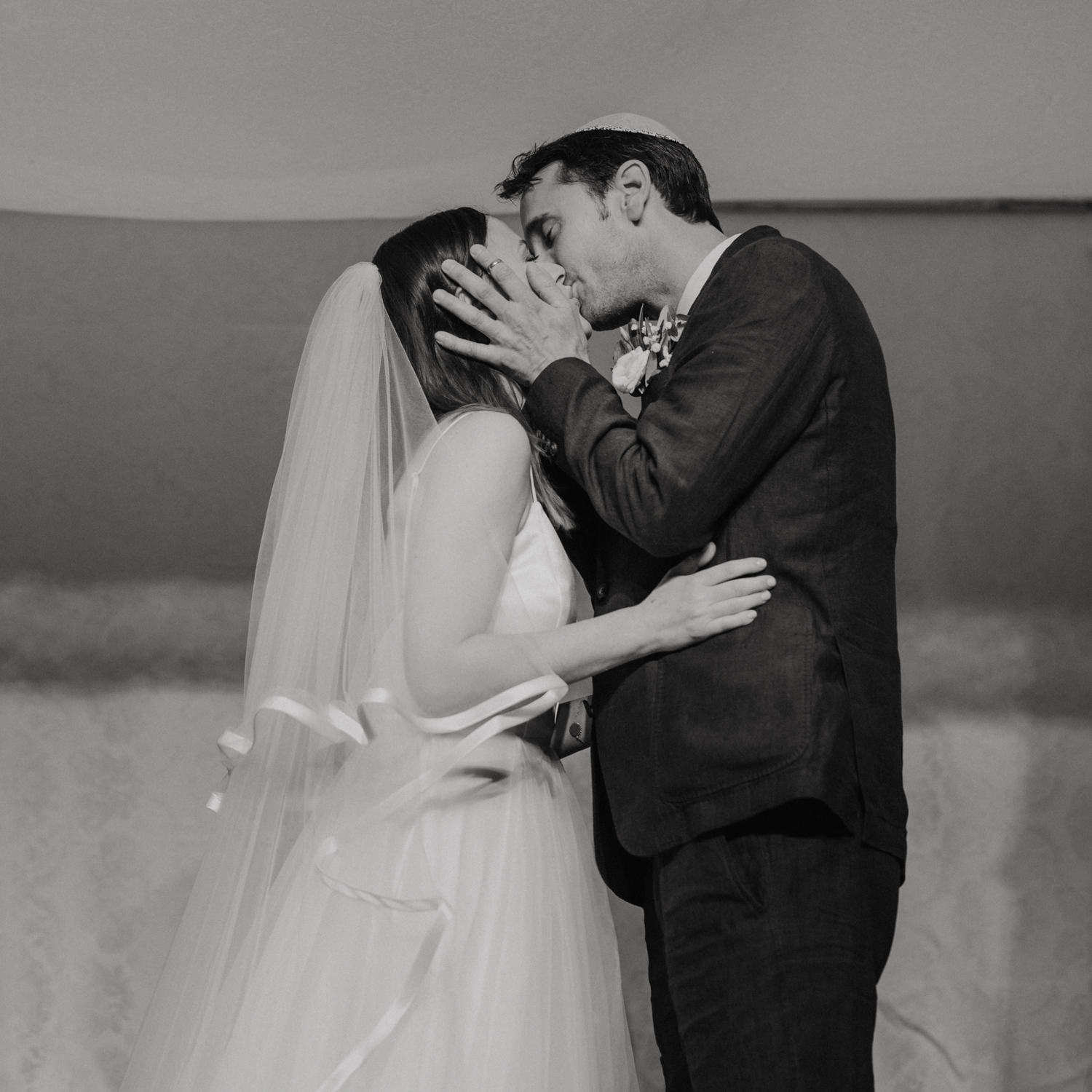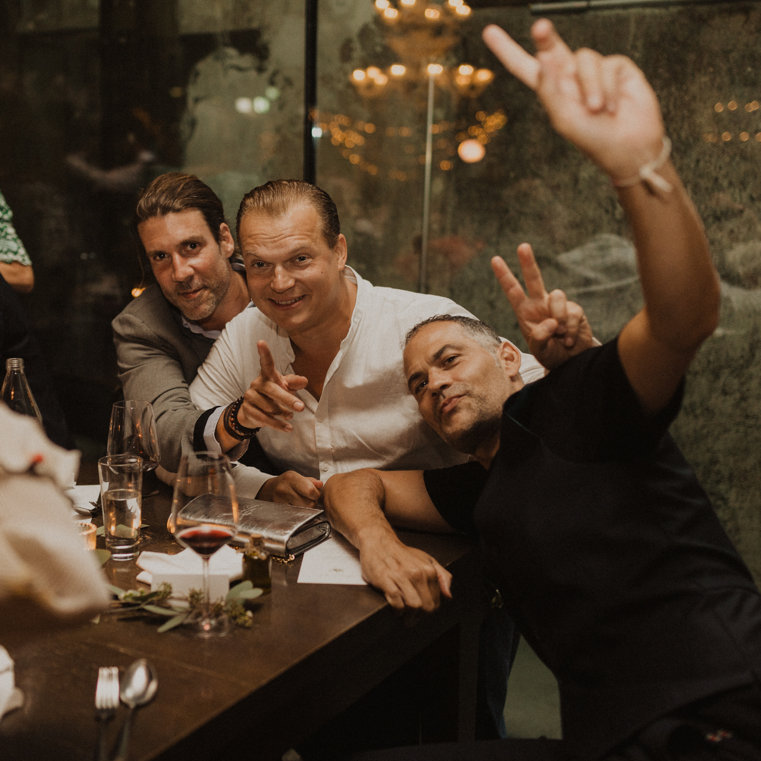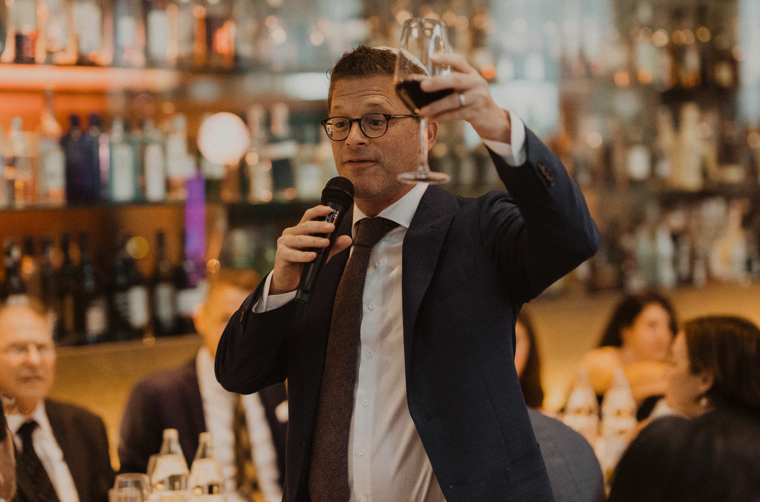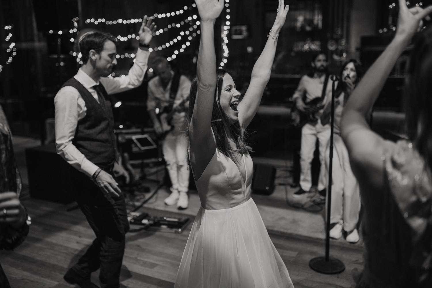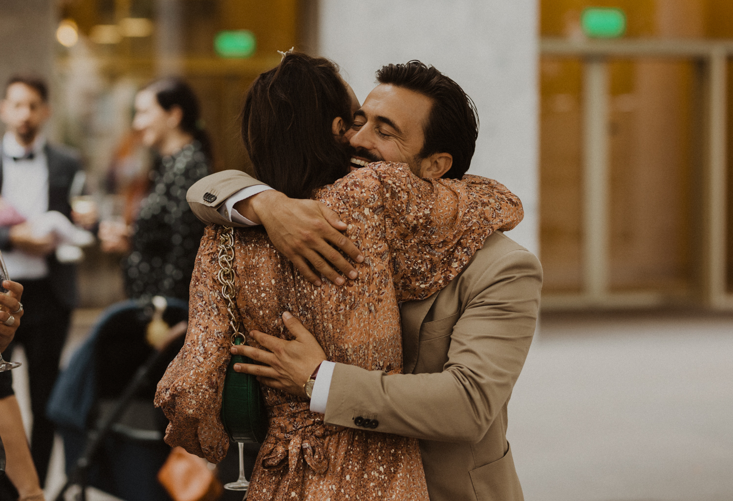 Die Gäste wurden vor der Zeremonie herzlich willkommen geheissen zu einem kleinen Apero. Danach nahmen alle Platz im super stylischen Innenraum des Schiffbau. Es wurde von einem begabten Künstler jüdische Lieder auf hebräisch gesungen, und alle welche die Lieder kannten, klatschen fröhlich mit. Ich war ehrlich gesagt super überrascht wie schön diese Sprache klingt! Der Bräutigam stand vorne bereit um seine Braut in Empfang zu nehmen. Simone hatte bei ihrem Einzug und auch noch anschliessend den Schleier traditionell noch vor dem Gesicht. Die beiden sassen auch, wie das so üblich ist bei jüdischen Trauungen, unter einer Chuppa. Nach dem Eheversprechen, der Ringübergabe, dem obligatorischen Kuss und den Segnungen durfte Philipp noch ein Glas zertreten. Auch das ist Tradition und war neu für mich. Anschliessend wurde so richtig zu jüdischer Musik getanzt und gefeiert. Es war eine super fröhliche Stimmung und hat mich sehr berührt! Danach gab es ein leckeres Apero und es wurde rege geplaudert und gratuliert. Nach diesem Zusammensein ging es in den wunderschönen Festsaal im Schiffbau. Ins Restaurant LaSalle. Die Dekoration war wirklich einmalig schön, das Essen super lecker und die Bedienung sehr freundlich. Es fanden Beiträge statt, einige Reden und Erinnerungs-Powerpoints gab es natürlich auch. Es wurde gelacht und die Liebe von Simone & Philipp gefeiert. Anschliessend kam eine richtig coole Live-Band «Maxin», welche die heutigen Hits Live spielt. Die Stimmung war super und Simone & Philipp liessen es sich nicht nehmen, zu ihrem Lieblingssong mitzusingen.